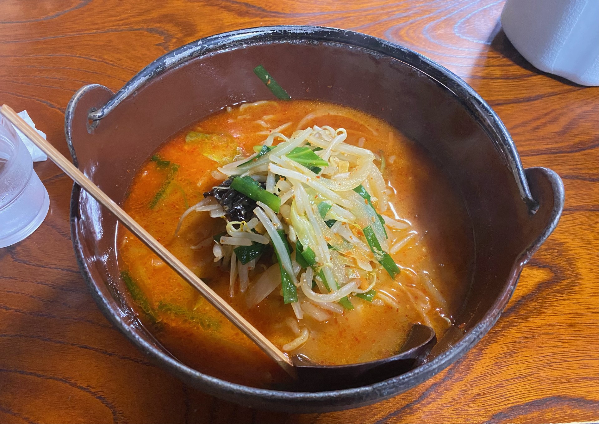 11月、母校の喜多方市立第二中学校へ。キャリア教育の一環として、斎藤さんと一緒に目標を持つ大切さや、普段の仕事などについてお話させていただきました。当時お世話になった先生方や同級生にも再会でき懐かしい気持ちになったのと同時に、改めて地元のために働ける喜びを実感しました。帰り道には、喜多方ラーメンを堪能!小さい頃からよく通っている「くるくる軒」へ。定番の醤油ラーメンはもちろんですが、ここの隠れた名物が「スタミナ激辛みそ」写真のように鉄鍋で提供されるんです。斎藤さんもびっくり...!野菜たっぷりで、豚骨や鶏がらの出汁が効いたスープがまた体にしみる美味しさなんです。辛さも調節できますよ。喜多方の皆さん、ありがとうございました。