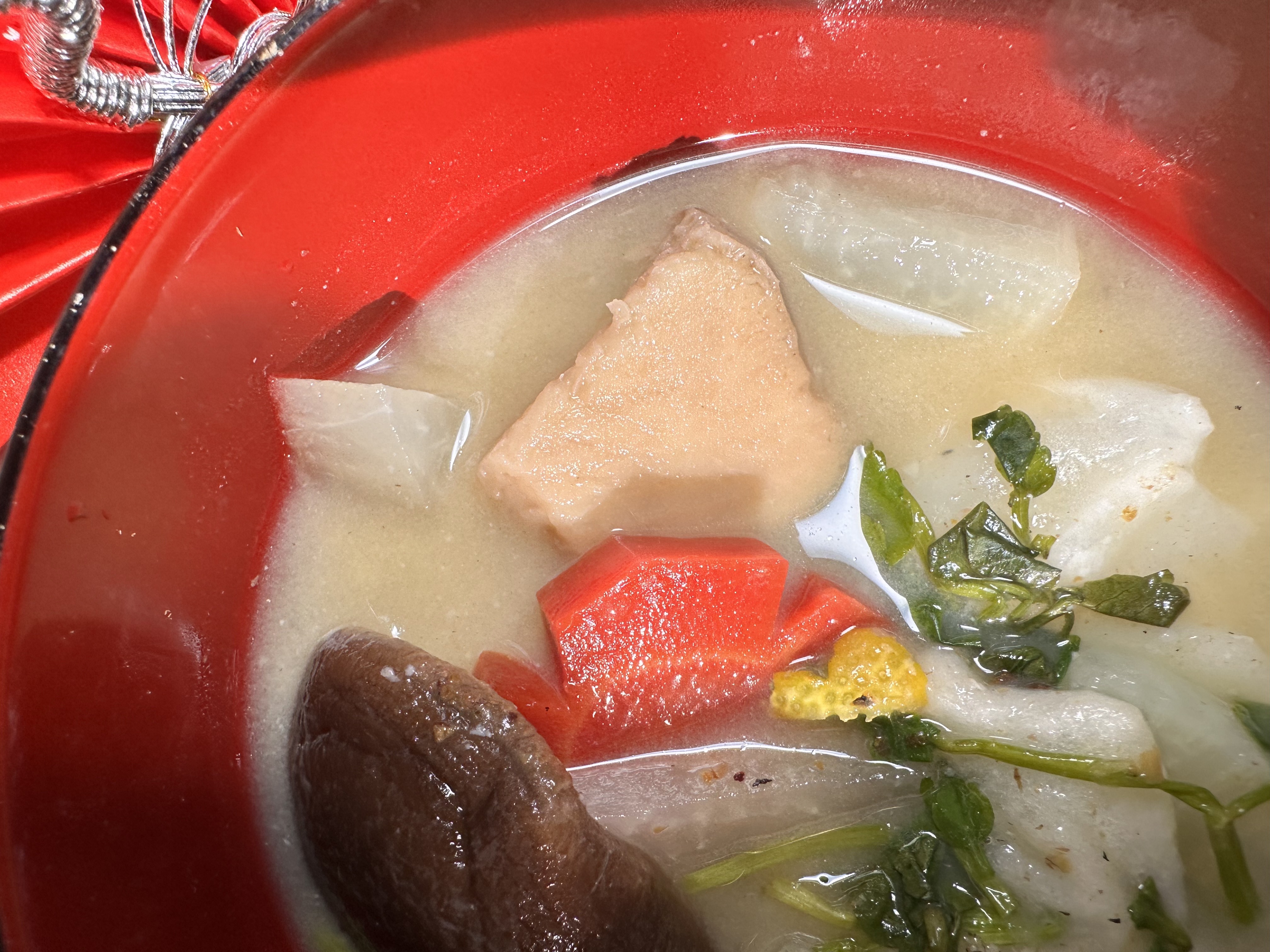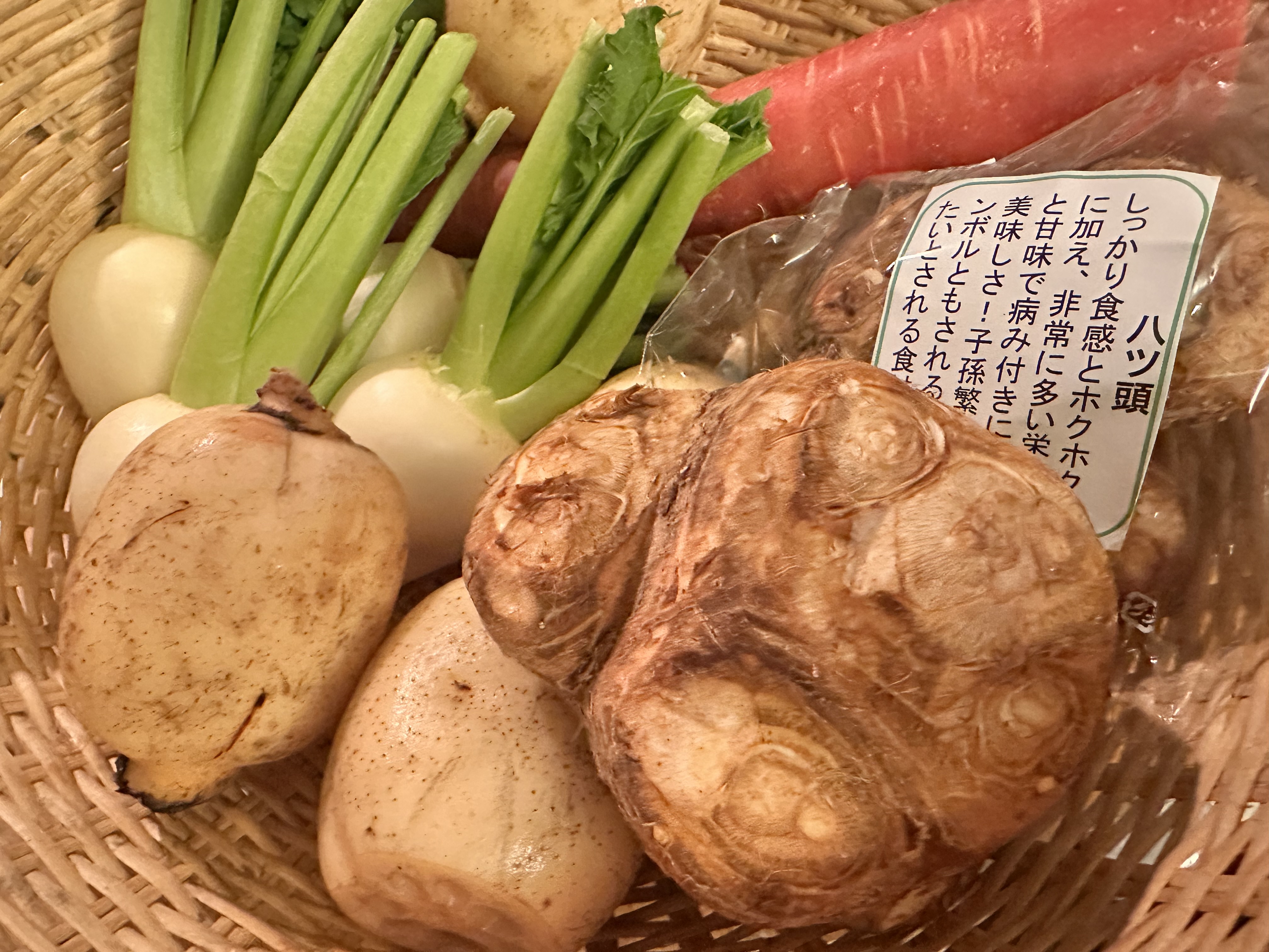 今年の注目素材は大玉村の直売所でみつけた「八つ頭」です。里芋の仲間で、お煮しめにも、雑煮にも。おいしく頂きました!