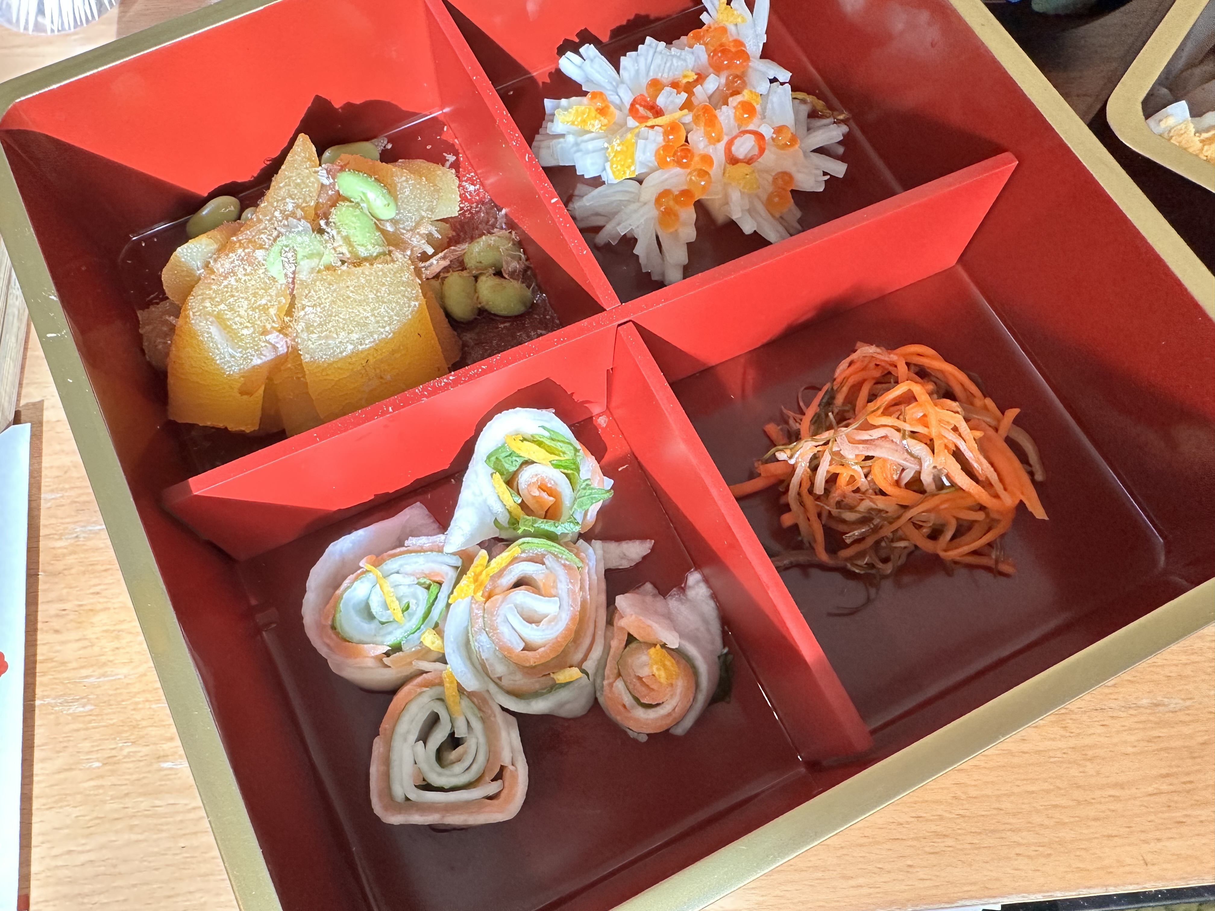 2024年のはじまりは福島の自宅で、ゆっくり過ごすことになったので、それならばと、「おせち料理」を作りました。福島と京都の合わせ技。菊花かぶも、慎重にカブに切れ目をいれ、大成功。
