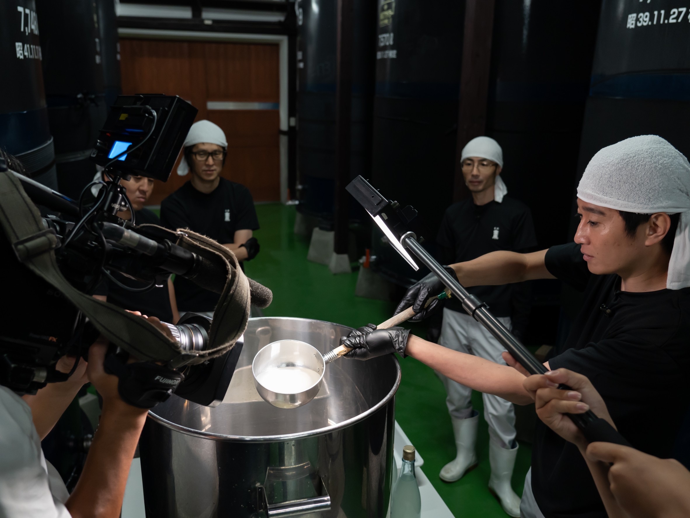 (憧れの酒蔵で、蔵人の格好までできるとは...超絶興奮です)