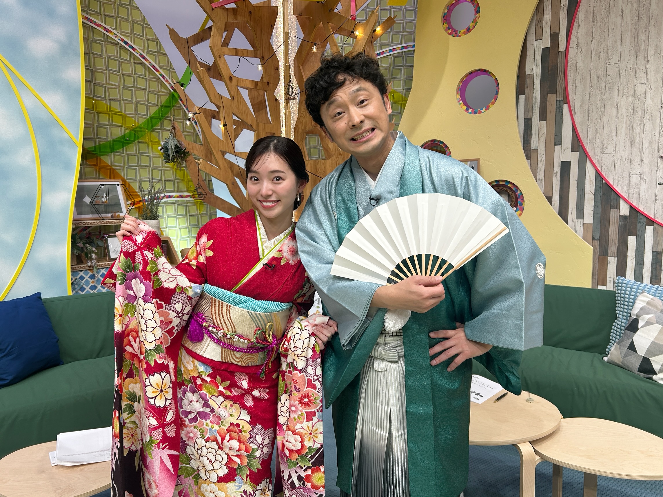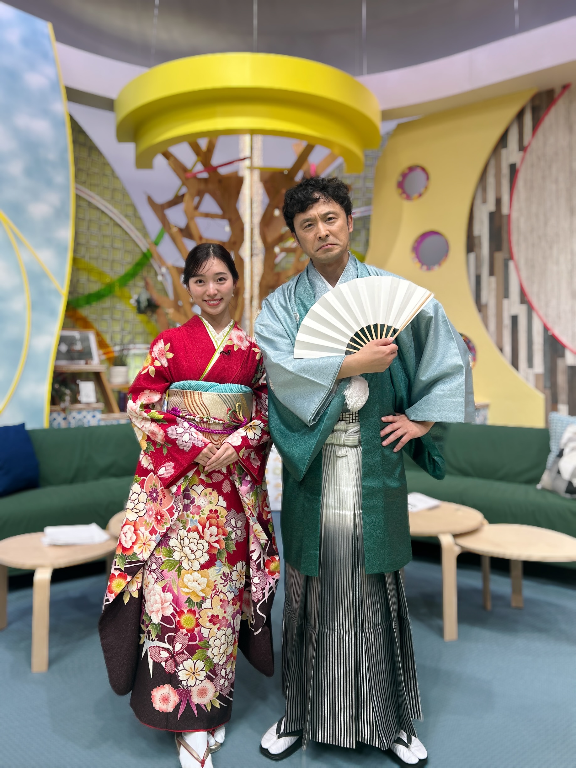 華やかな着物は、スタジオをパッと明るくしてくれて